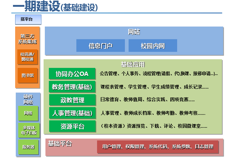 2 | 基础数据平台 | 基础中心,校园所有应用都基于此平台,包括第三方系统集成 |