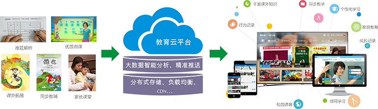以精准内容为驱动力,以“一云多屏,多端联动”技术为基础,开创全新的学校、家庭联合教育运营模式。